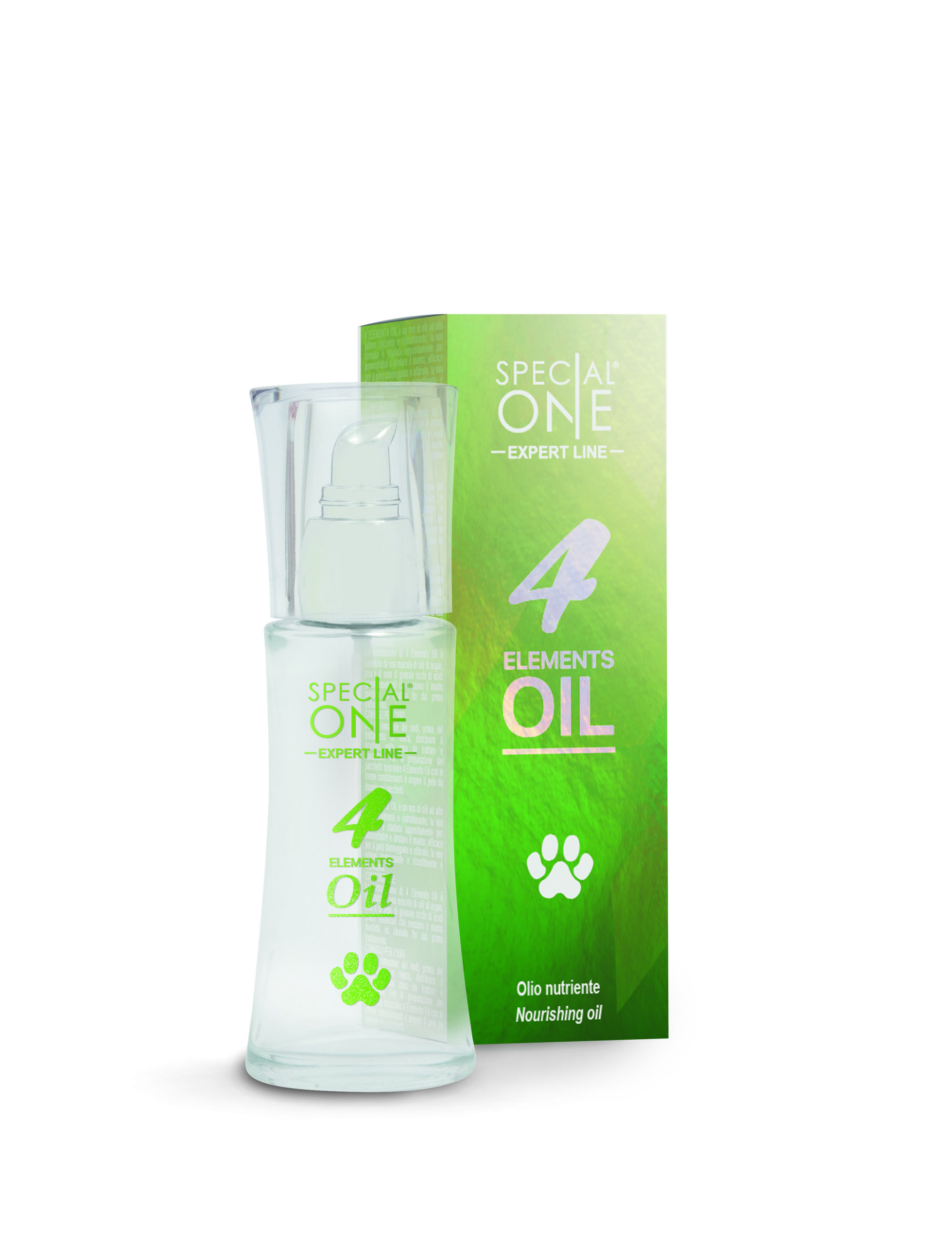 4 Elements Oil is een mengsel van oliën dat speciaal is ontworpen om de vacht te versterken en opnieuw op te bouwen. Effectief voor broos, beschadigd en gestrest haar, is de herstructurering en revitaliserende werking onmiddellijk. Het geeft de vacht een buitengewone helderheid en een fluweelzachte touch. Het werkt ook als ‘klittensmelter’ die de opening van het vilt vóór de wasmiddelbehandeling vergemakkelijken en garandeert een resultaat van schittering, weerstand en elasticiteit van de beschadigde delen van het haar. Het beschermt ook tegen hitte.